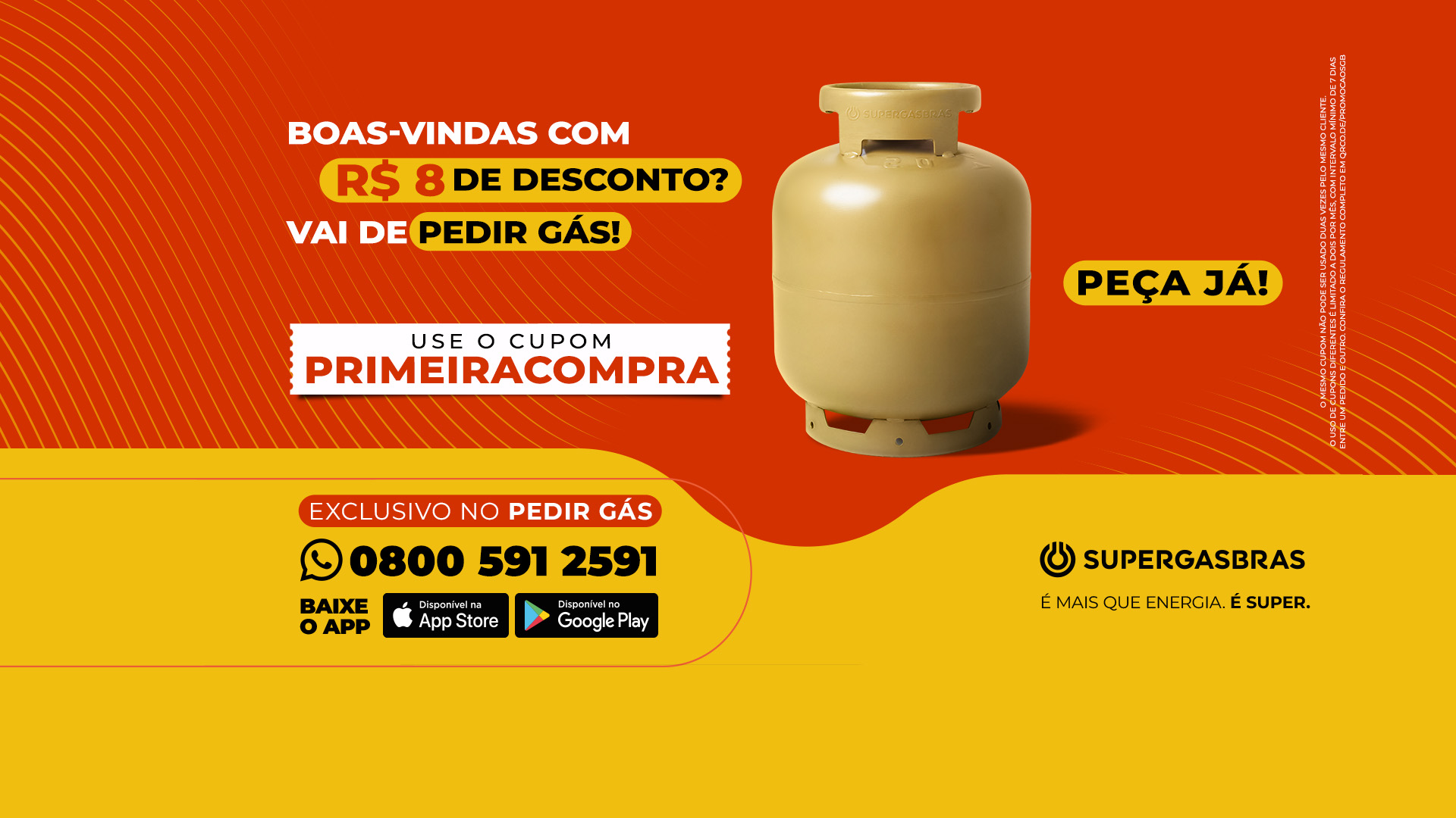 No aplicativo ou WhatsApp da Supergasbras você pede seu botijão de gás em poucos cliques e ainda aproveita nossos super descontos!