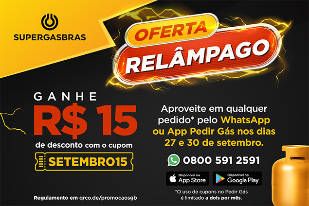 Aproveite R$15 de desconto na 1ª compra pelo WhatsApp ou App Pedir Gás usando o cupom PRIMEIRACOMPRA em novembro.